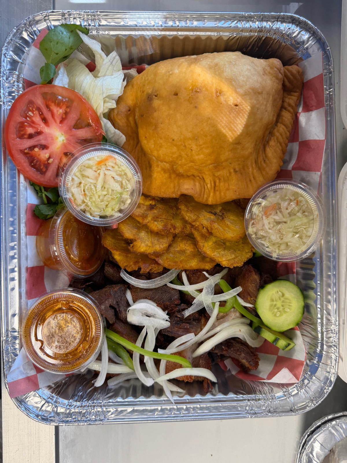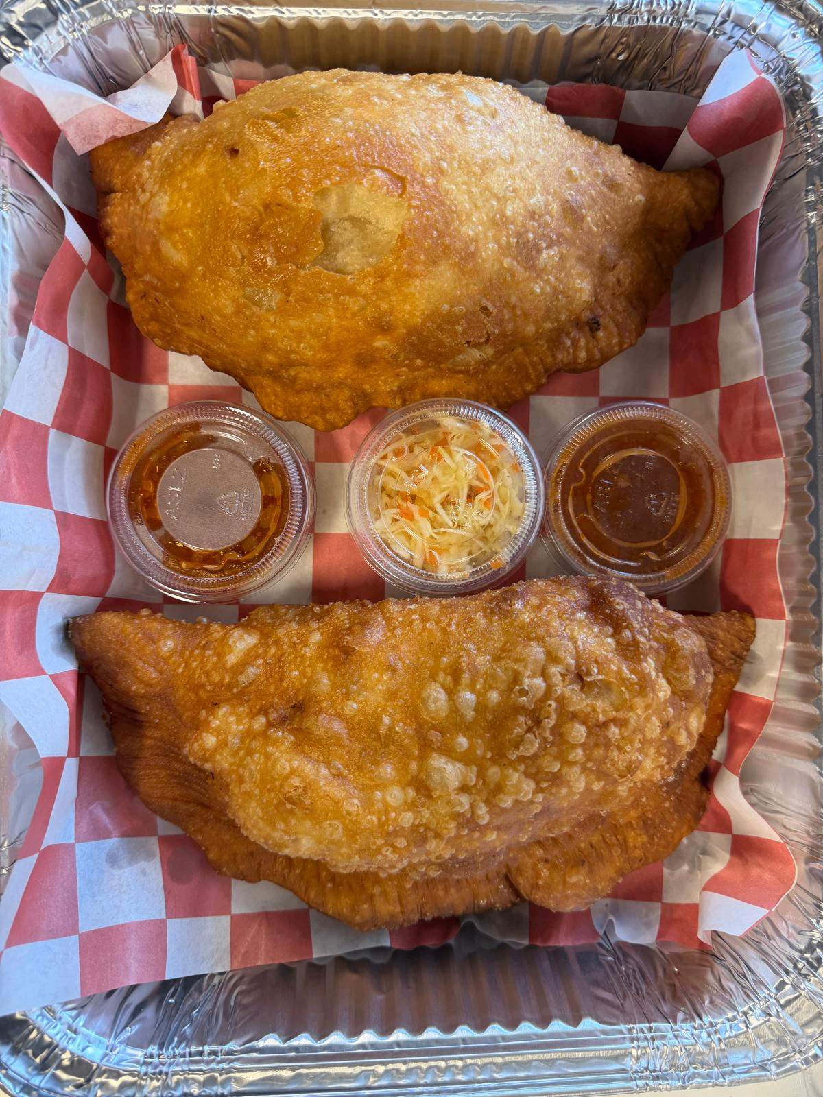 Savory Haitian meat patties with a golden, flaky crust and seasoned pork filling. Served with pikliz and our house-made sauces.